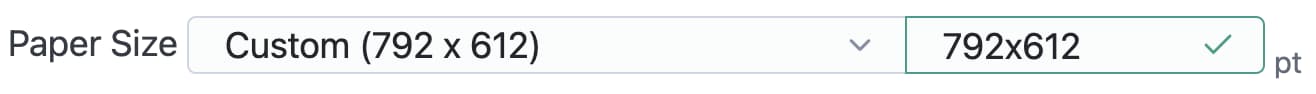 A: a lot of default papers are provided in 3. Printer Paper section's dropdown. Note that the dimensions (in pt) are listed there. To rotate the paper, just type in a custom dimension that's the flip of the default. You don't need to select a custom dimension - just start typing in the text field and use x as the delimiter between the two values.